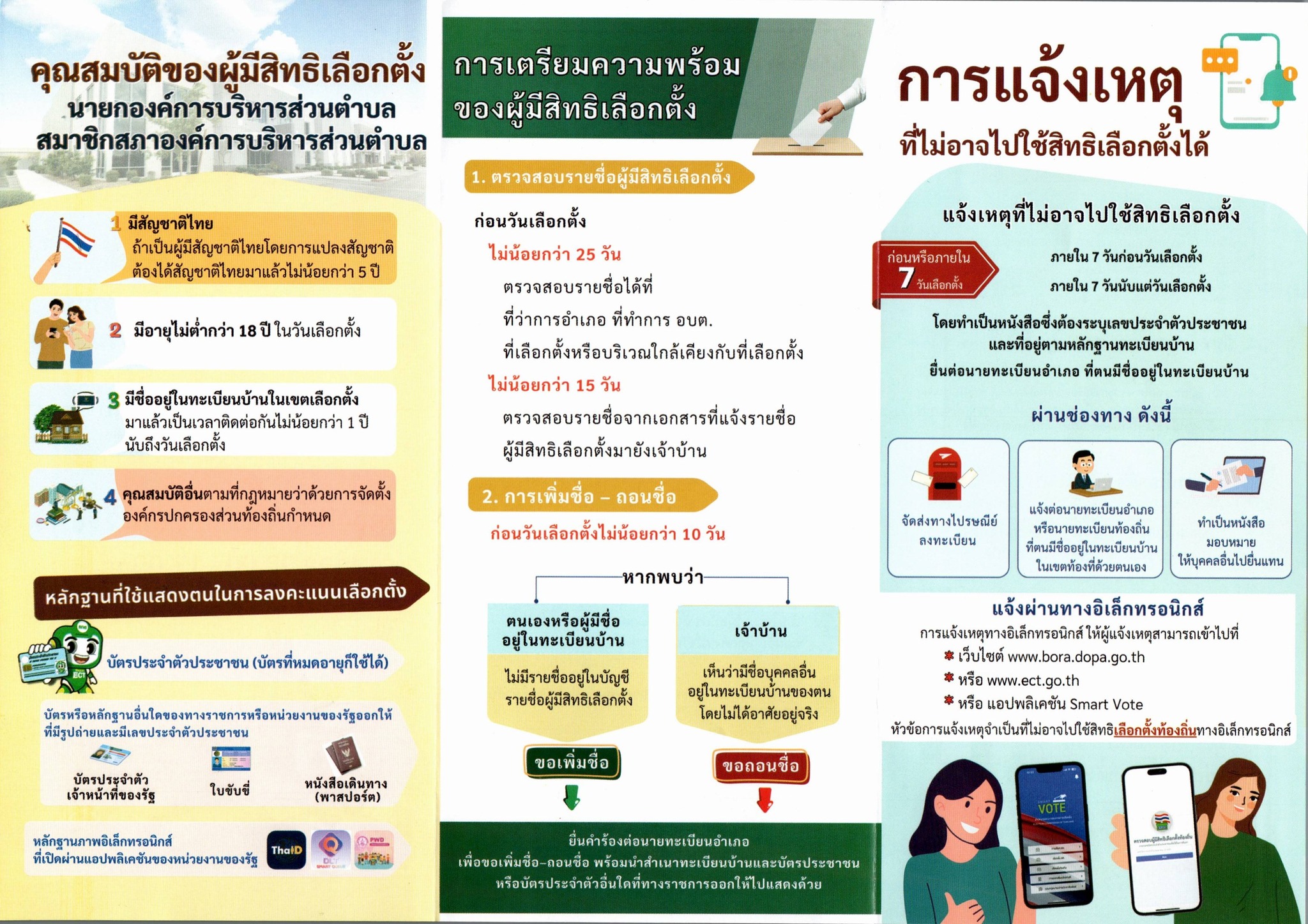 ประชาสัมพันธ์แผ่นพับการเลือกตั้งสมาชิกสภาองค์การบริหารส่วนตำบลโคกตาลและนายกองค์การบริหารส่วนตำบลโคกต...