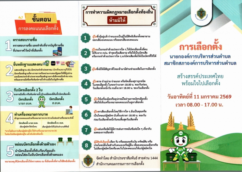 ประชาสัมพันธ์แผ่นพับการเลือกตั้งสมาชิกสภาองค์การบริหารส่วนตำบลโคกตาลและนายกองค์การบริหารส่วนตำบลโคกตาล